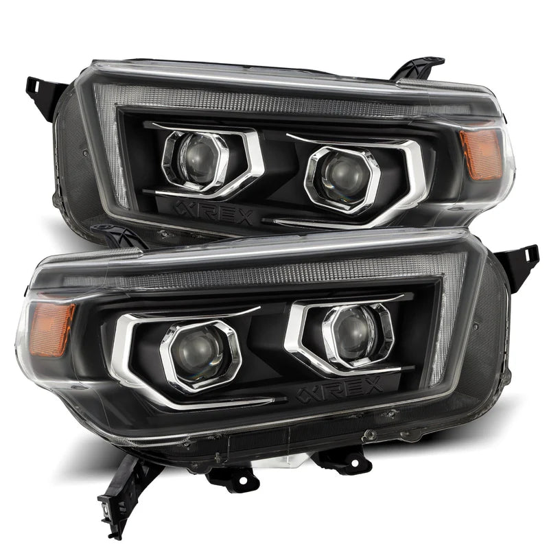 Introducing AlphaRex's 5th gen Toyota 4Runner PRO-Series headlights, meticulously crafted to seamlessly integrate with the stock design of your vehicle while elevating both style and functionality. These headlights feature a sleek LED tube around the edge, serving as a dynamic DRL (Daytime Running Light) and turn signal, enhancing visibility and safety on the road.