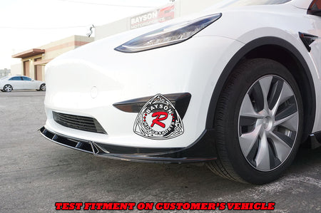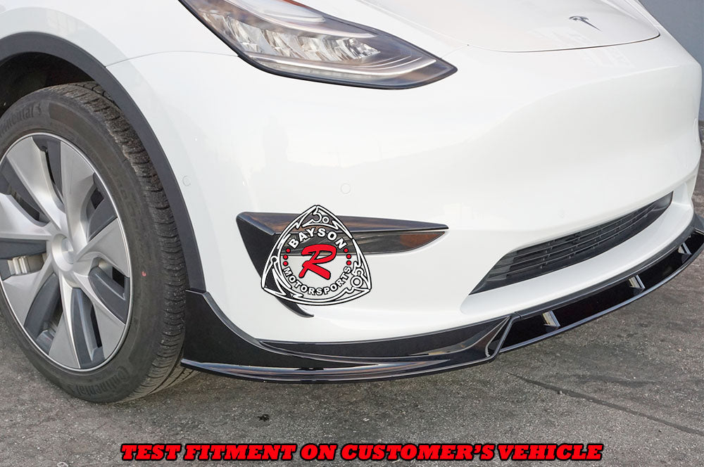Telsa Model-Y Front Lip (2020-2025) F Style . This aerodynamic front lip upgrade is designed to enhance the airflow dynamics of your vehicle , improving overall vehicle stability at higher speeds. Crafted from high-quality carbon fiber, it not only boosts performance but also adds a striking, aggressive aesthetic to your car's front end. Its precise fitment ensures seamless integration with your vehicle's design, making it an ideal choice for enthusiasts seeking both function and style in their upgrade.