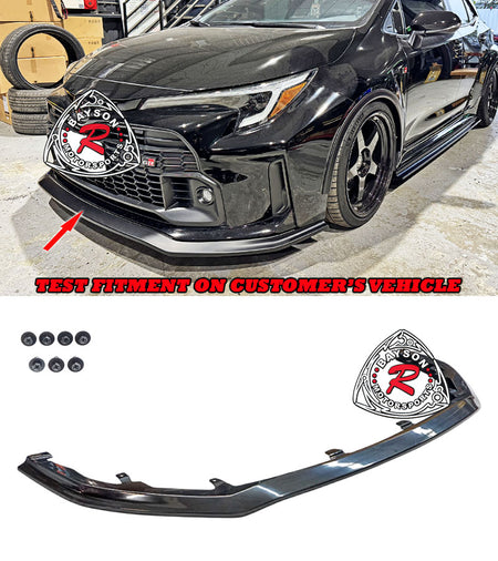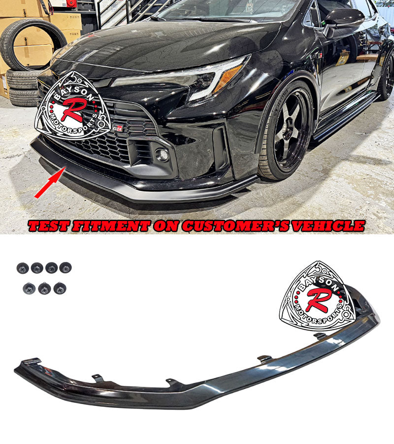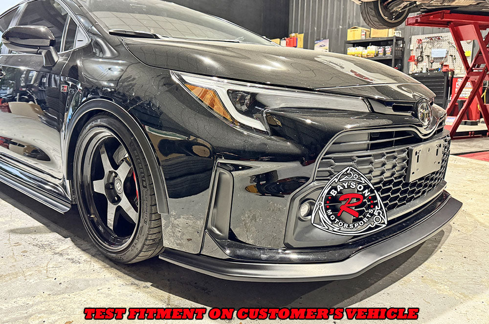 Toyota GR Corolla Front Lip (2023-2024) GD Style. Enhance the appearance and protection of your car with these front lip. Designed to replicate the original equipment manufacturers specifications, these front lip provide a precise fit that integrates seamlessly with your vehicle's body lines. Constructed from durable materials, they offer excellent resistance to wear and environmental damage, helping to shield your car's wheel wells from debris and road hazards. Perfect for both restoration and customization projects, these front lip maintain the authentic look of your Toyota while adding a subtle, refined edge to its exterior styling.