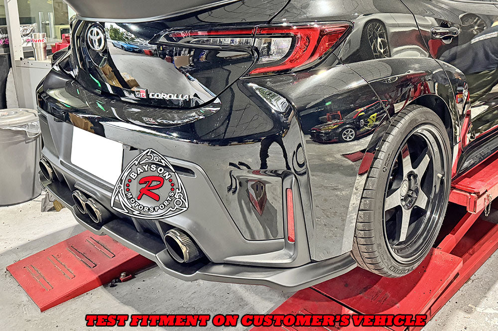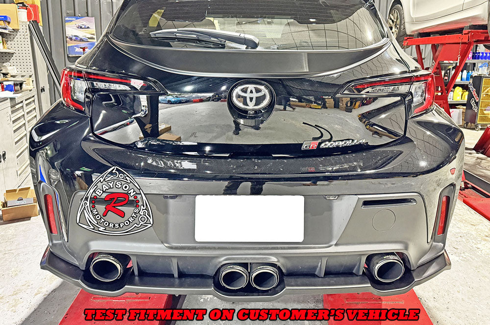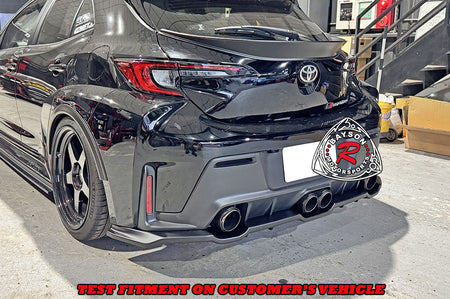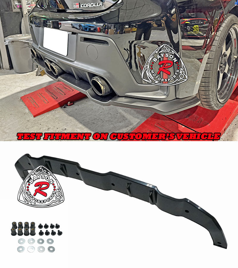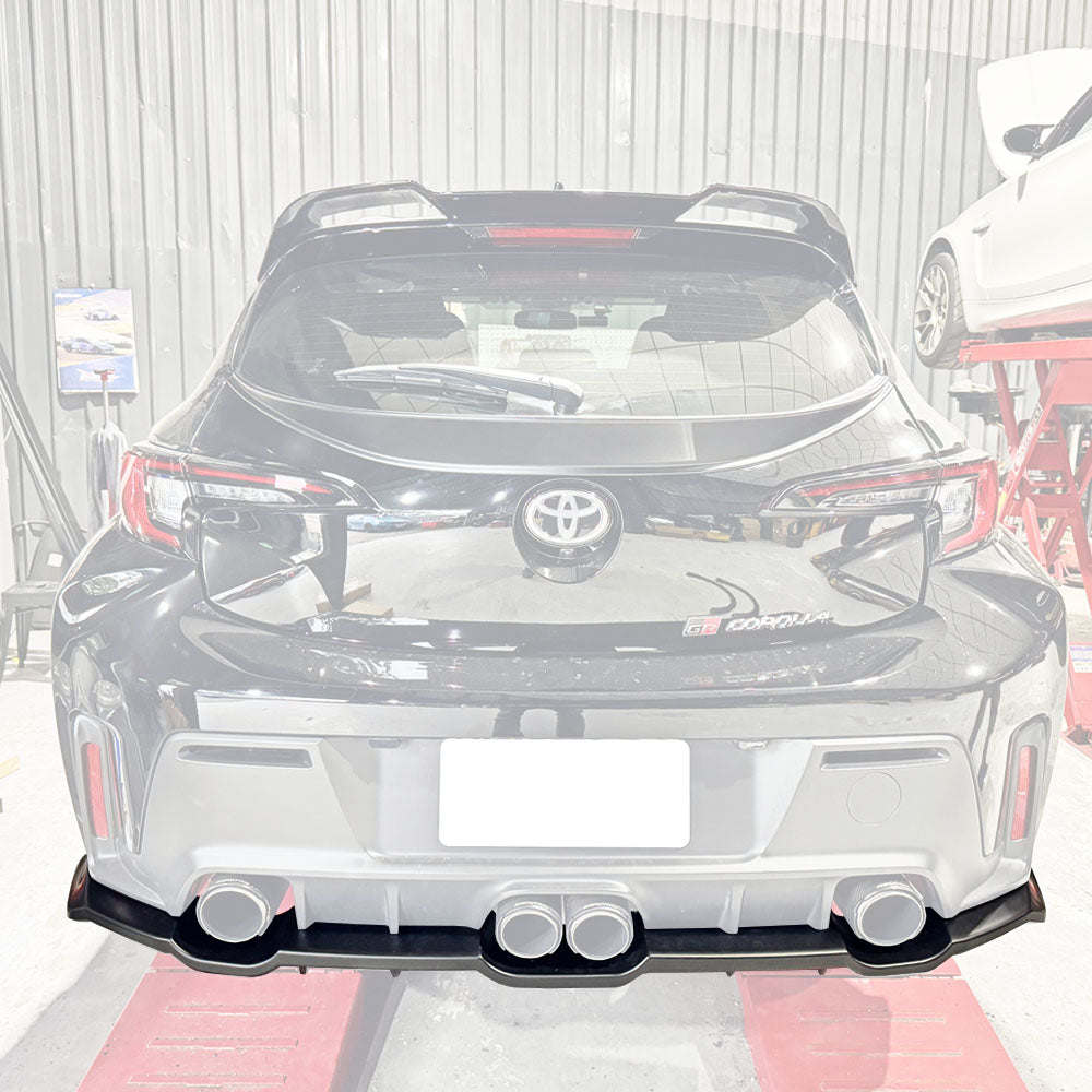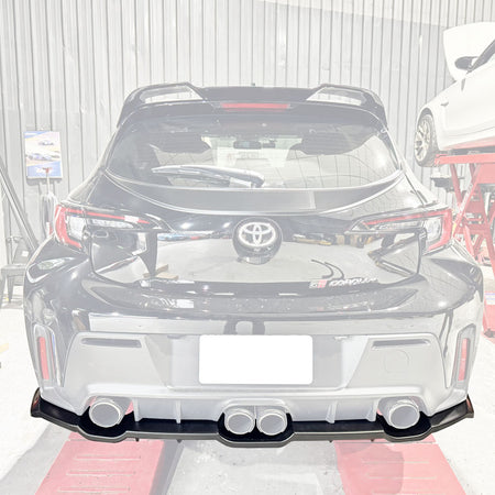 Toyota GR Corolla Rear Diffuser (2023-2025) GD Style. Enhance the appearance and protection of your car with these rear diffuser. Designed to replicate the original equipment manufacturers specifications, these rear diffuser provide a precise fit that integrates seamlessly with your vehicle's body lines. Constructed from durable materials, they offer excellent resistance to wear and environmental damage, helping to shield your car's wheel wells from debris and road hazards. Perfect for both restoration and customization projects, these rear diffuser maintain the authentic look of your Toyota while adding a subtle, refined edge to its exterior styling.