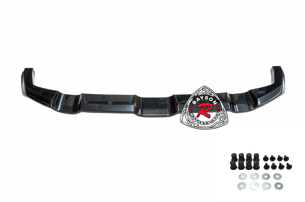 Comes in gloss black. Looks great and fits great. I widened my fender liner holes a little bit in order to use the included hardware. I have an Apexi exhaust. The two tips on the side are too big, so I had to trim the rear lip.