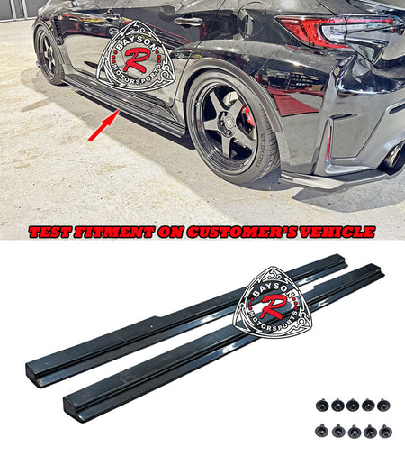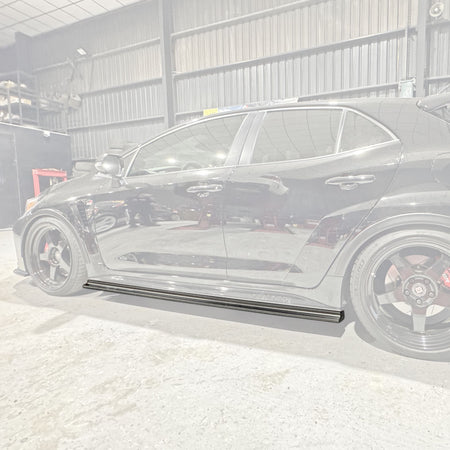 Toyota GR Corolla Side Skirts (2023-2025) GD Style. Enhance the appearance and protection of your car with these side skirts. Designed to replicate the original equipment manufacturers specifications, these side skirts provide a precise fit that integrates seamlessly with your vehicle's body lines. Constructed from durable materials, they offer excellent resistance to wear and environmental damage, helping to shield your car's wheel wells from debris and road hazards. Perfect for both restoration and customization projects, these side skirts maintain the authentic look of your Toyota while adding a subtle, refined edge to its exterior styling.