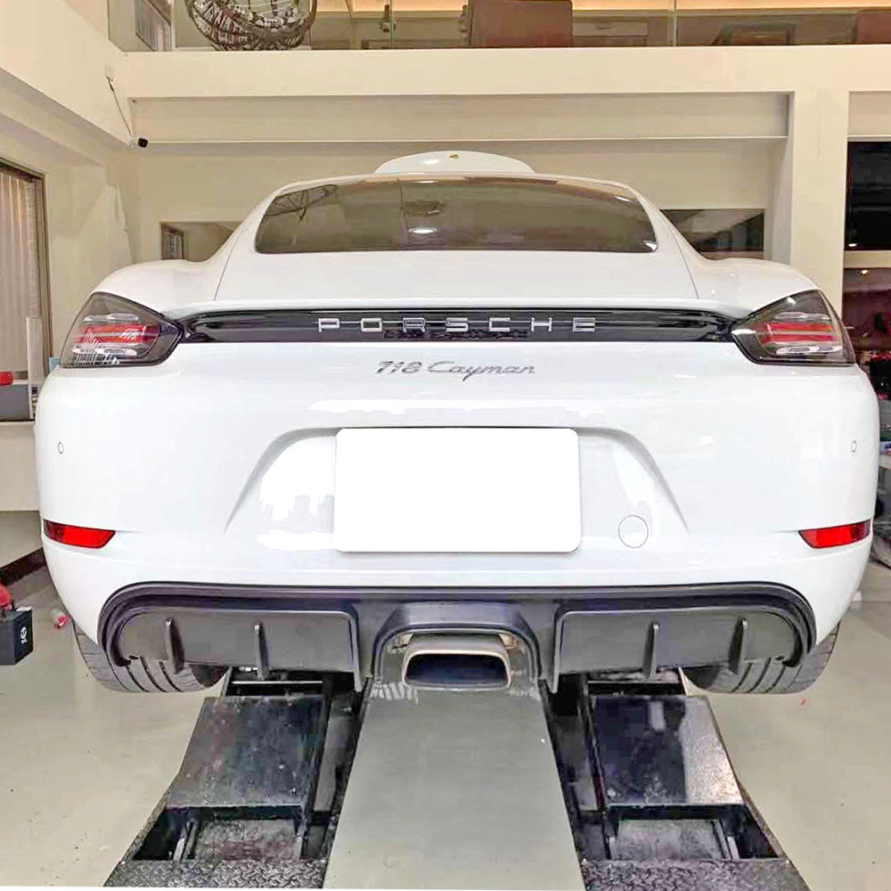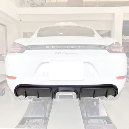 Porsche Boxster/Cayman 718 Rear Diffuser (2017-2022) GT4 Style. Enhance your car with this expertly designed rear diffuser, crafted to improve aerodynamic efficiency by optimizing airflow beneath the vehicle. This add-on not only reduces drag but also adds a sleek, aggressive look to the rear profile, elevating both performance and style. Precision-engineered to fit seamlessly, it complements your car's sporty design while contributing to better stability at higher speeds. Ideal for enthusiasts seeking both functional upgrades and refined aesthetics, this rear diffuser is a smart addition to your car's exterior enhancements.
