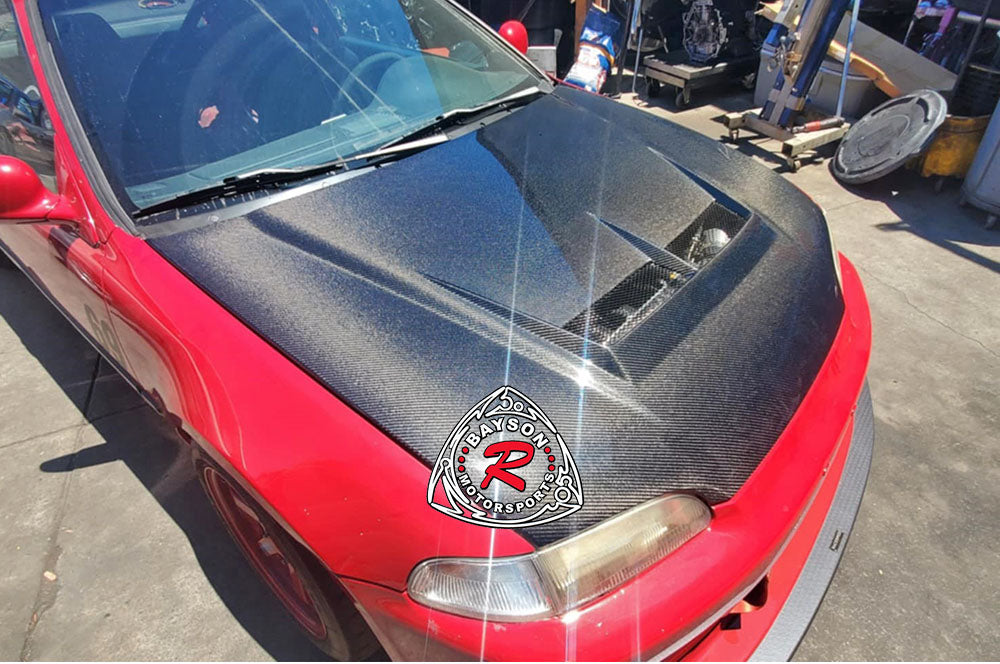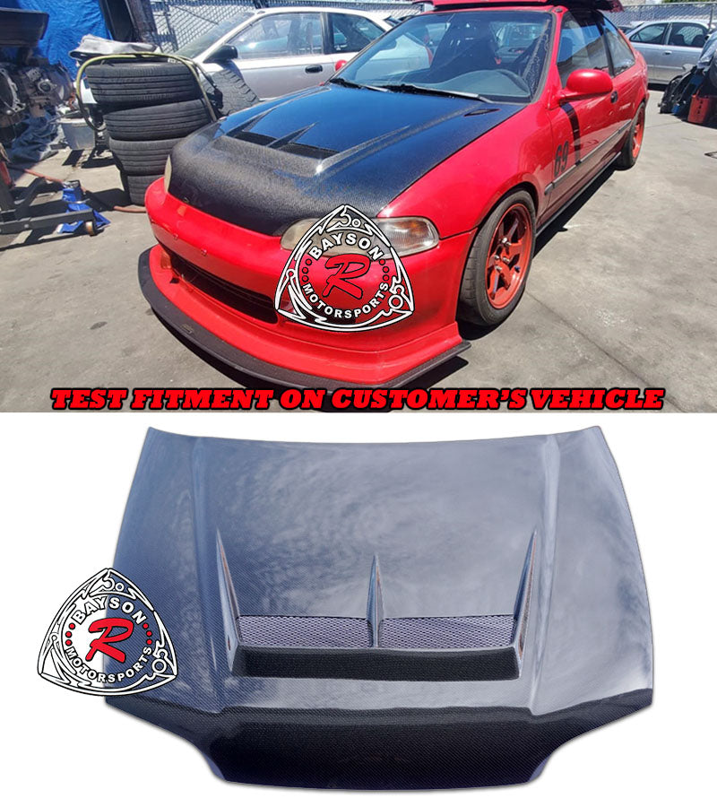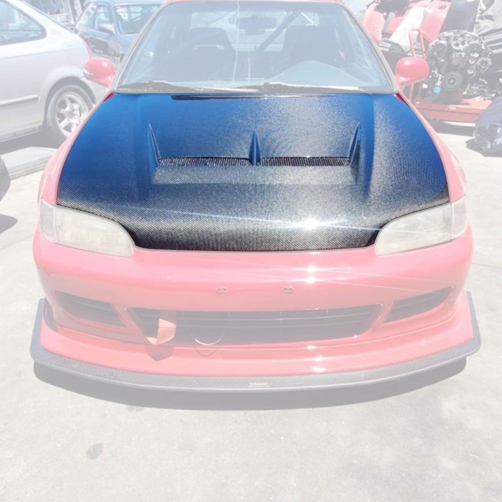 Honda Civic 2Dr/3Dr Carbon Fiber Hood (1992-1995) JS Style, Premium aftermarket replacement hood designed to enhance both performance and aesthetics. Crafted from lightweight, high-quality real carbon fiber, this hood significantly reduces vehicle weight, contributing to improved handling and acceleration. Its precise fit ensures seamless integration with your vehicle, while the aggressive styling hood adds a distinctive, sporty appearance. Engineered for durability and strength, this hood is an excellent upgrade for enthusiasts seeking to combine functional performance gains with striking visual appeal.