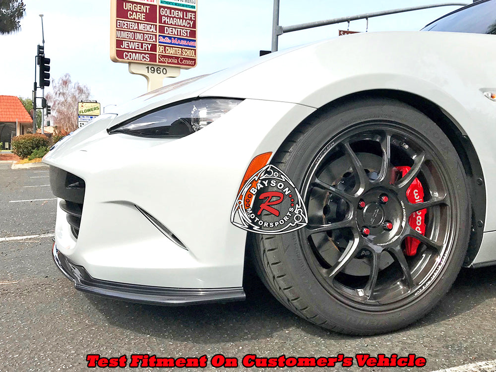Mazda Miata Front Lip (2016-2024) MP Style. This aerodynamic front lip upgrade is designed to enhance the airflow dynamics of your vehicle , improving overall vehicle stability at higher speeds. Crafted from high-quality carbon fiber, it not only boosts performance but also adds a striking, aggressive aesthetic to your car's front end. Its precise fitment ensures seamless integration with your vehicle's design, making it an ideal choice for enthusiasts seeking both function and style in their upgrade.