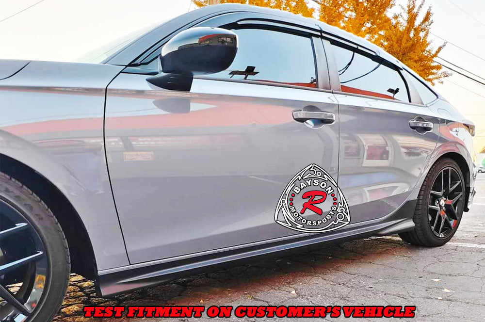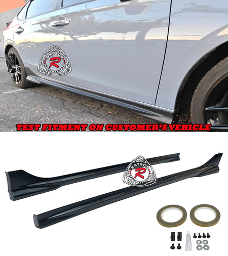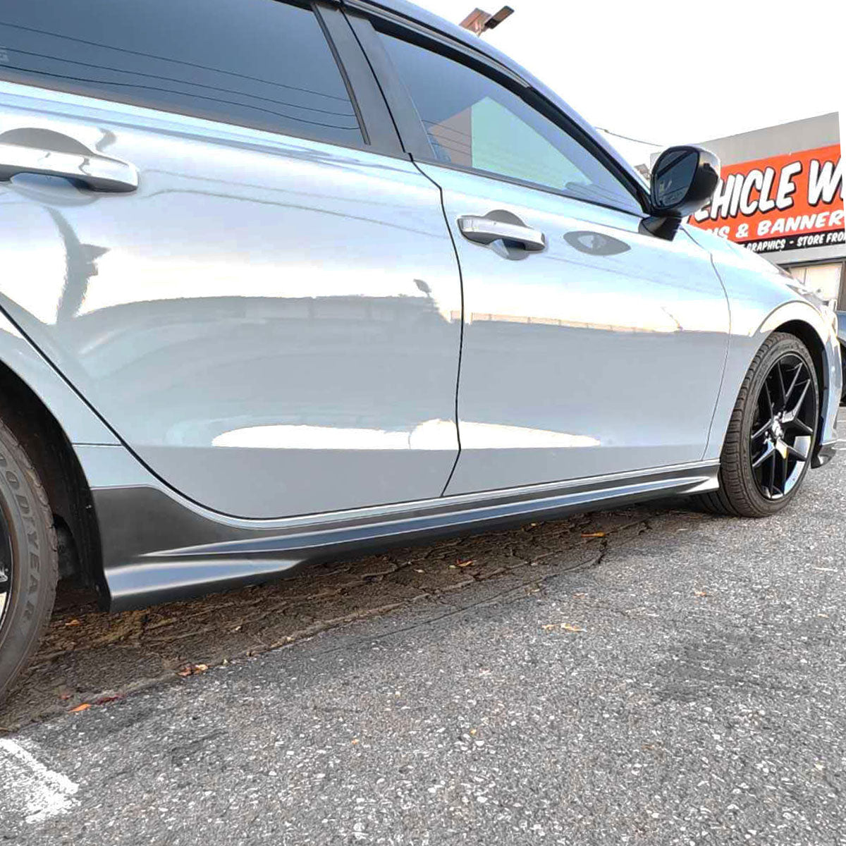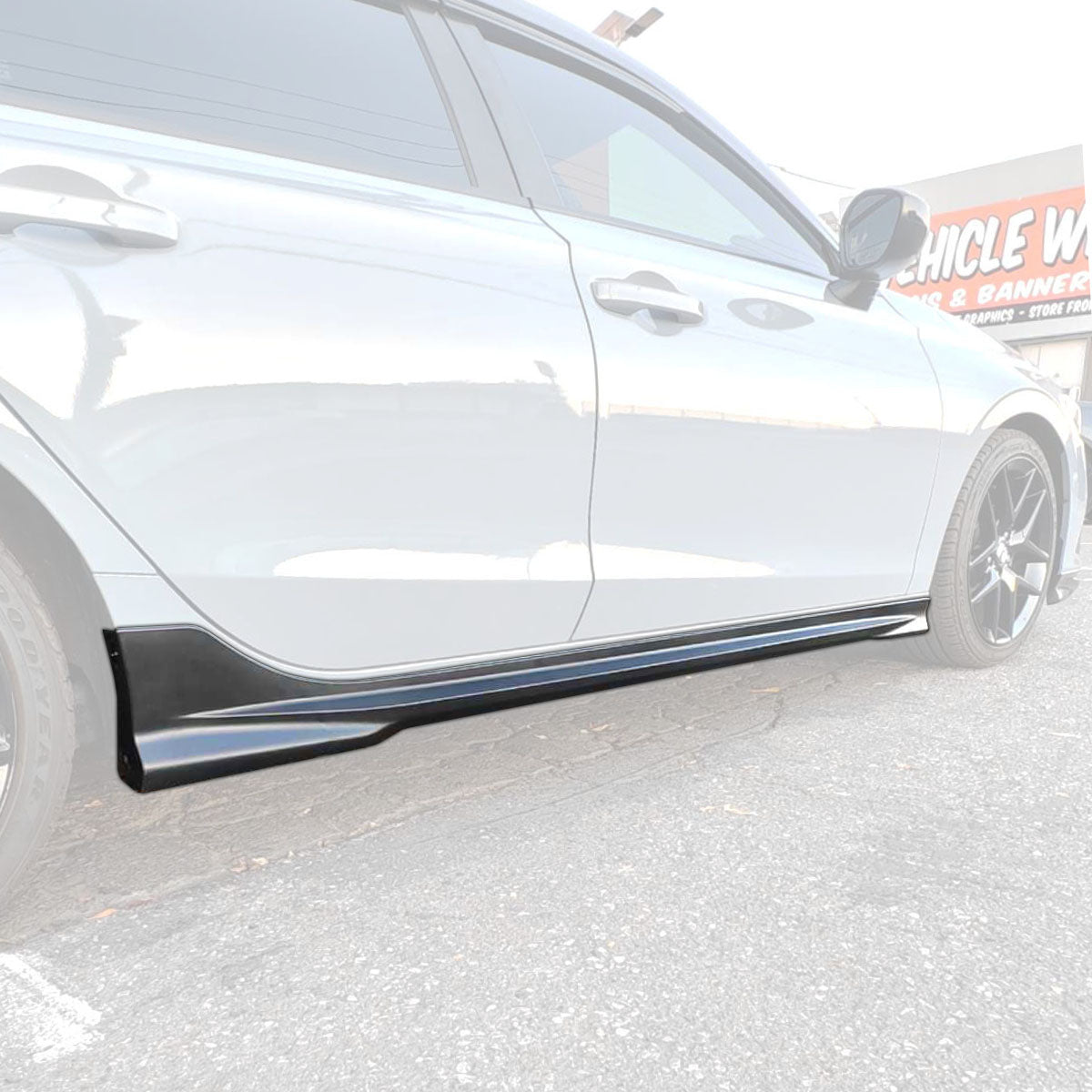 Honda Civic Side Skirts (2022-2025) MU Style. Enhance your ride with these aftermarket exclusively design Side Skirts. Crafted to seamlessly integrate with your vehicle's lines, these side skirts not only add a sleek, aggressive aesthetic but also improve aerodynamic performance by reducing drag and increasing stability at higher speeds. Made from durable materials, they offer long-lasting protection against road debris while elevating your car's overall presence. Perfect for enthusiasts seeking both style and function, these side skirts transform your car into a more dynamic and visually striking machine.