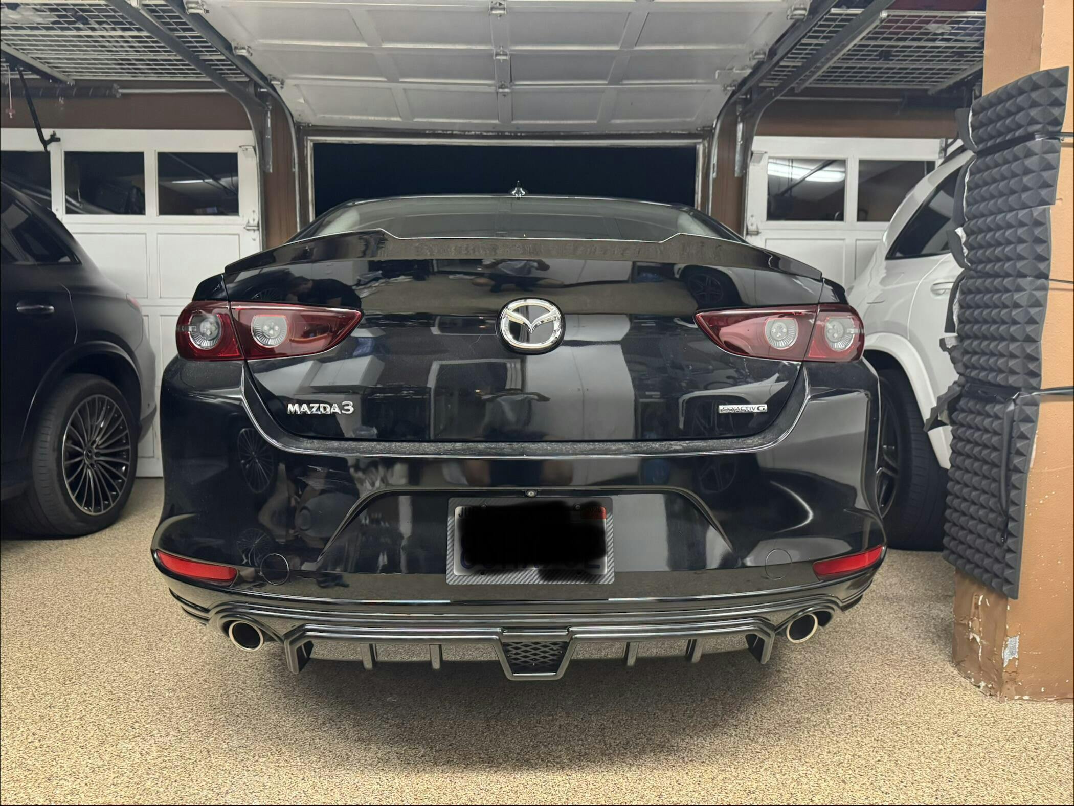 Note: Picture of diffuser is on a 2023 Mazda 3 carbon edition sedan taken roughly a year after install and without washing.