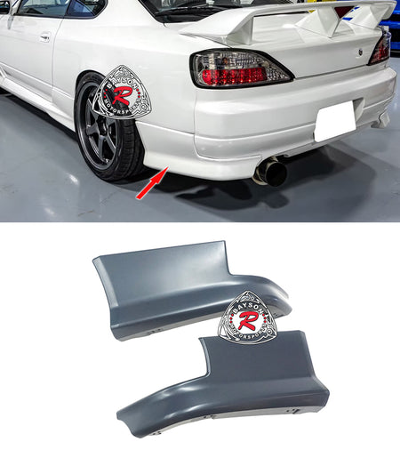 Nissan S15 Silvia Rear Aprons (1999-2002) Spec-R Style. Rear Aprons designed to improve aerodynamic efficiency and add a more aggressive, race-inspired look. Crafted to seamlessly integrate with your vehicle's original design, these rear aprons reduce drag and increase stability at high speeds. Made from durable materials, they offer both functional performance benefits and a sleek upgrade to your car's rear profile, perfect for enthusiasts seeking to combine style with improved driving dynamics.
