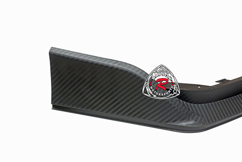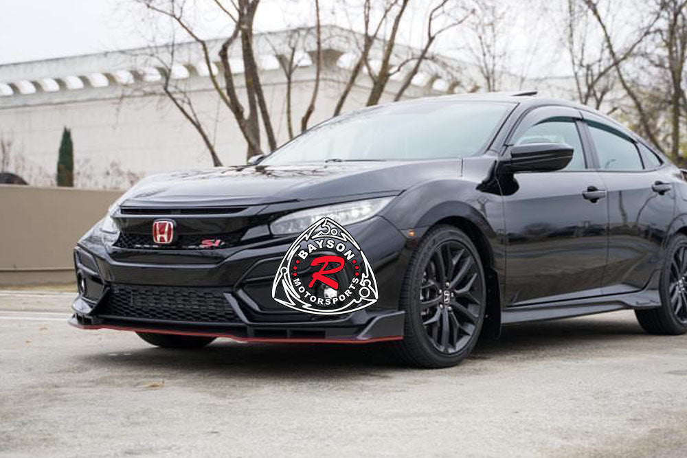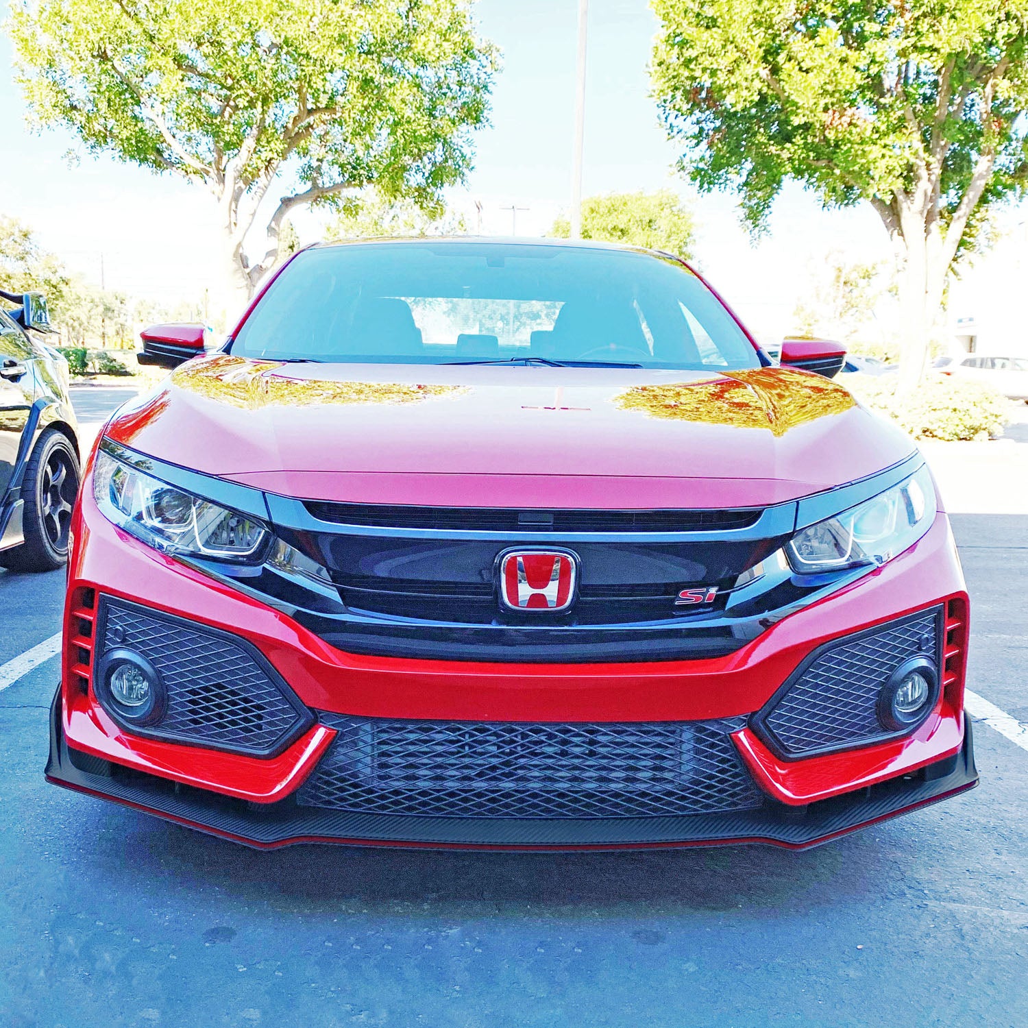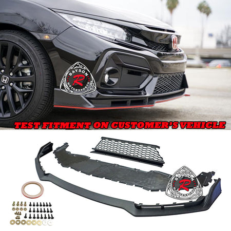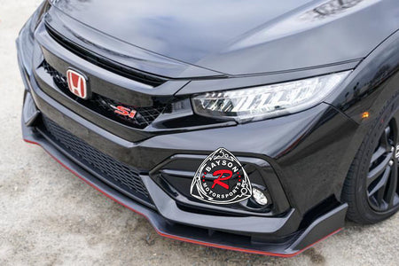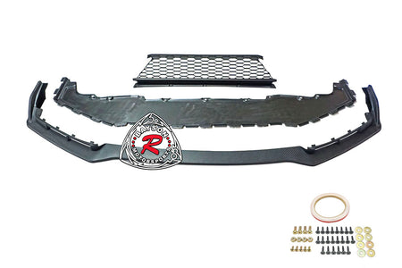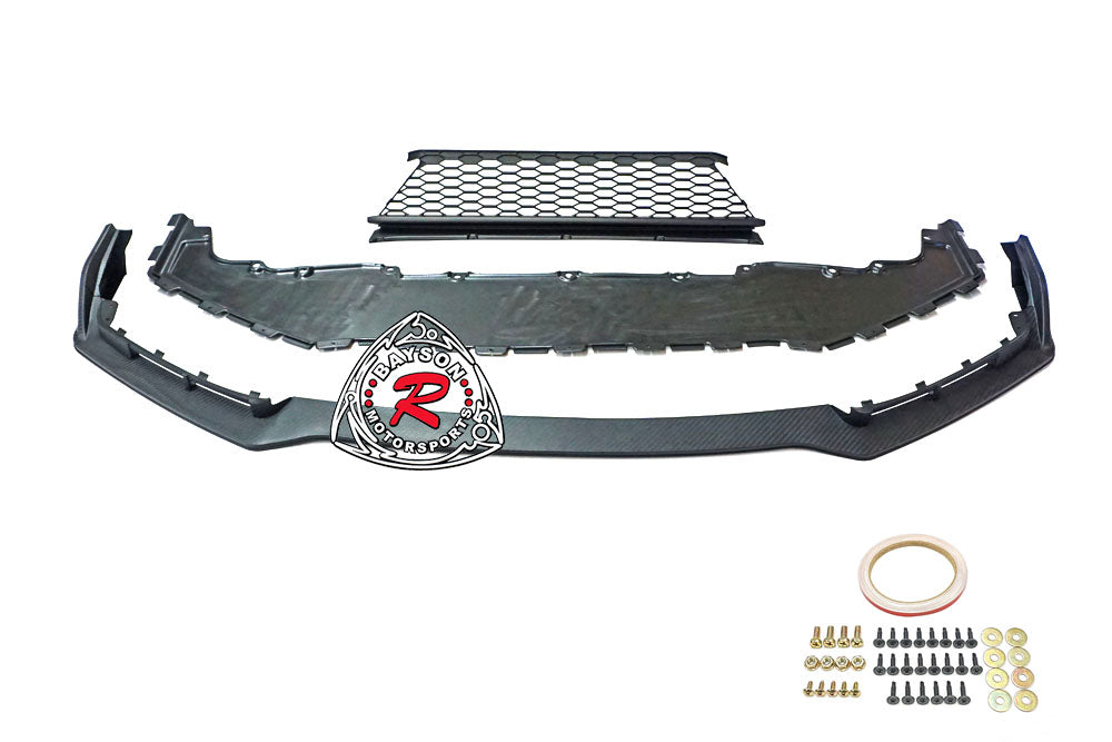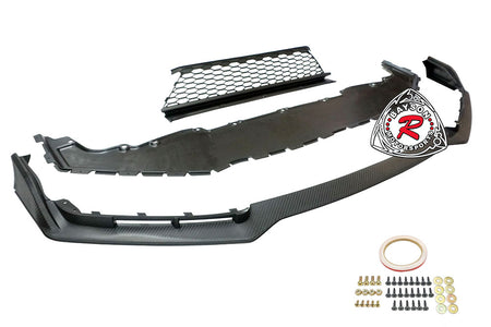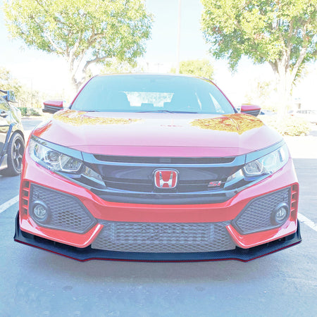 Honda Civic Si (2017-2021) Front Lip Matte Carbon Style TR Style with Lower Grille. This aerodynamic front lip upgrade is designed to enhance the airflow dynamics of your vehicle , improving overall vehicle stability at higher speeds. Crafted from high-quality carbon fiber, it not only boosts performance but also adds a striking, aggressive aesthetic to your car's front end. Its precise fitment ensures seamless integration with your vehicle's design, making it an ideal choice for enthusiasts seeking both function and style in their upgrade.