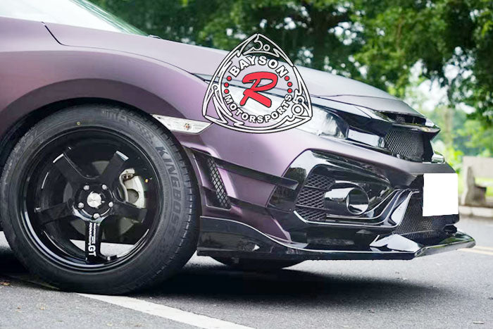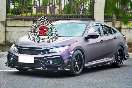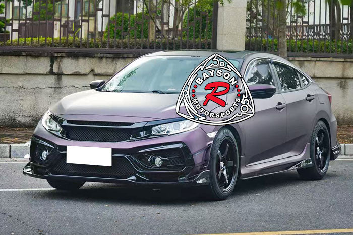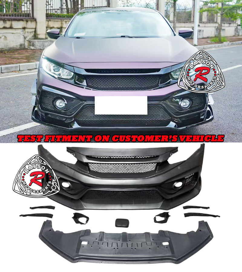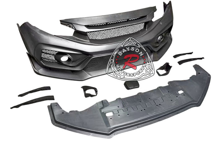 Honda Civic Front Bumper (2016-2021) VR Style. Enhance your car's with this front bumper featuring a sleek style. Designed to improve both aesthetics and aerodynamics, this replacement bumper offers a refined, aggressive look while optimizing airflow for better performance. Crafted with precision to fit perfectly, it provides a durable upgrade that elevates your vehicle's presence on the road. Experience improved handling and a distinctive style making every drive more engaging and visually striking.